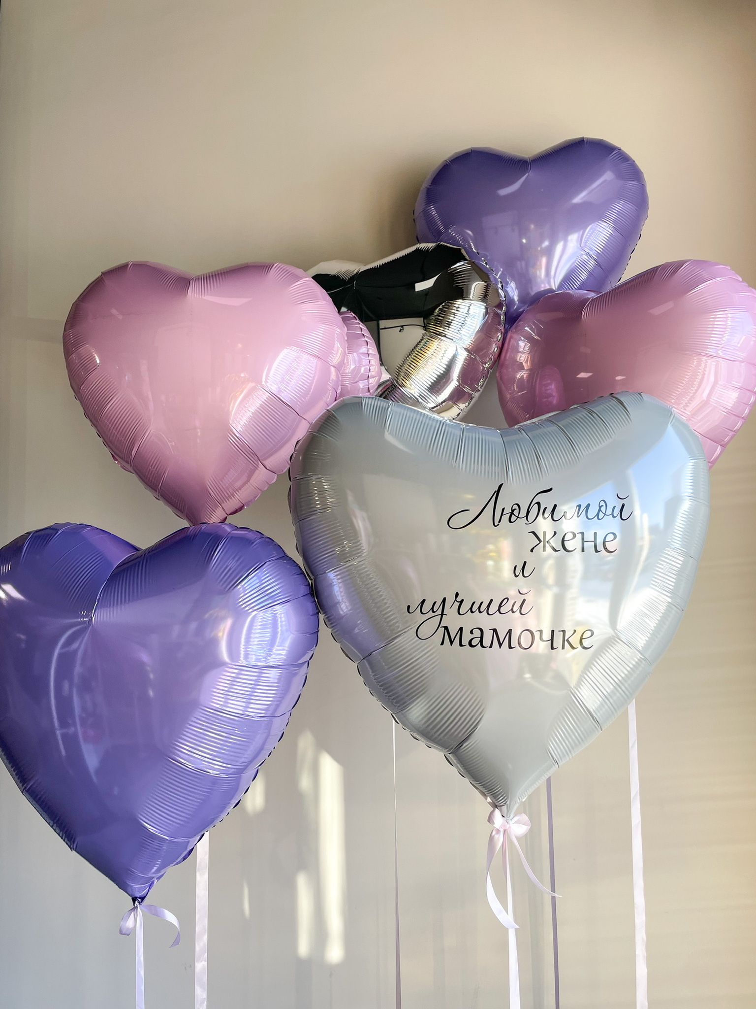 - 5 сердец 78 см на атласных лентах.