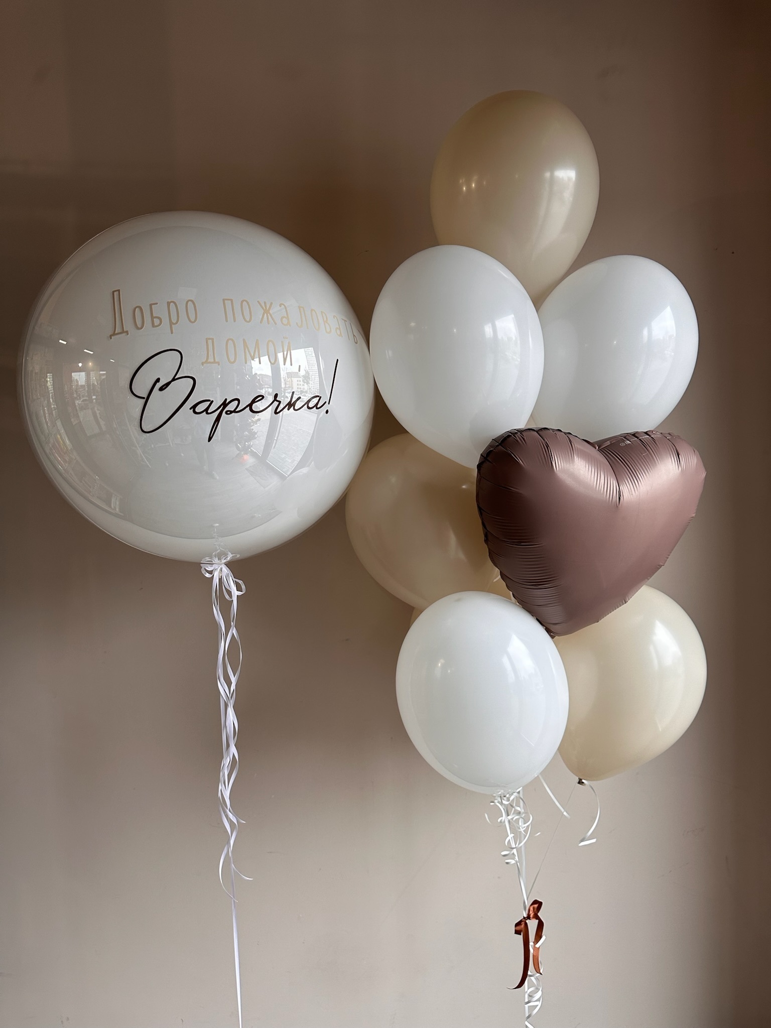 • Фонтан из 10 шаров (сердце какао, 5 белый песок, 4 белых)