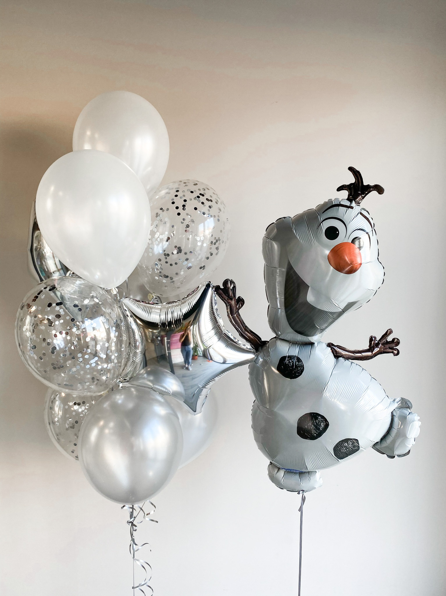 - Фонтан из 10 шаров: 2 звезды, 3 с конфетти, 5 однотонных