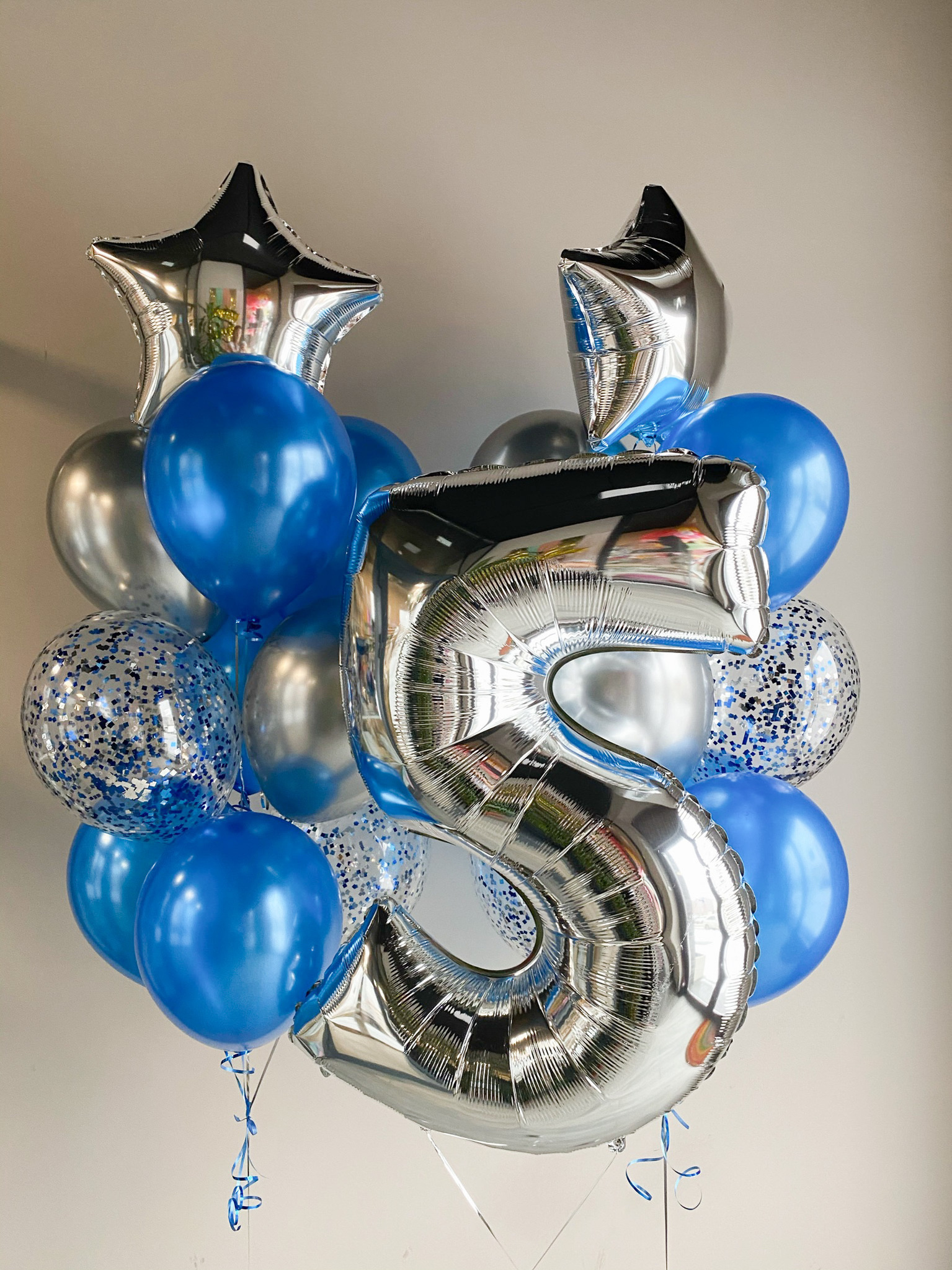 - Два Фонтана из 10 шаров: звезда, 2 с конфетти, 2 хром и 5 однотонных