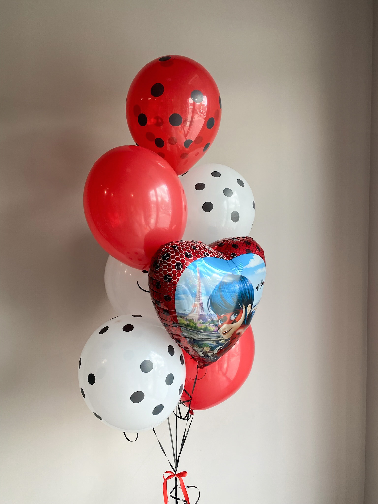 - Фонтан из 7 шаров: сердце Леди Баг, 3 с рисунком и 3 однотонных