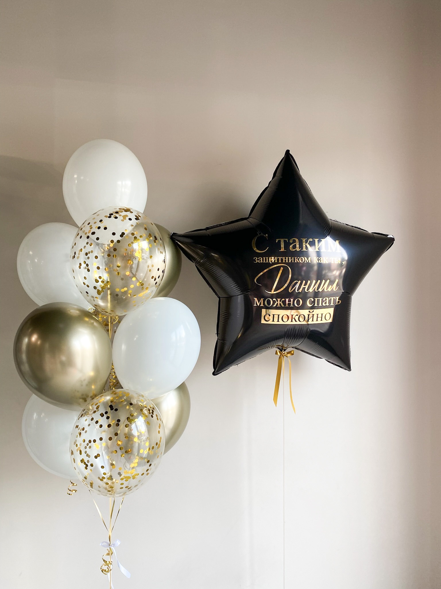 Данный набор возможен с изменением цветовой гаммы, количеством шаров, добавлением индивидуальной надписи)