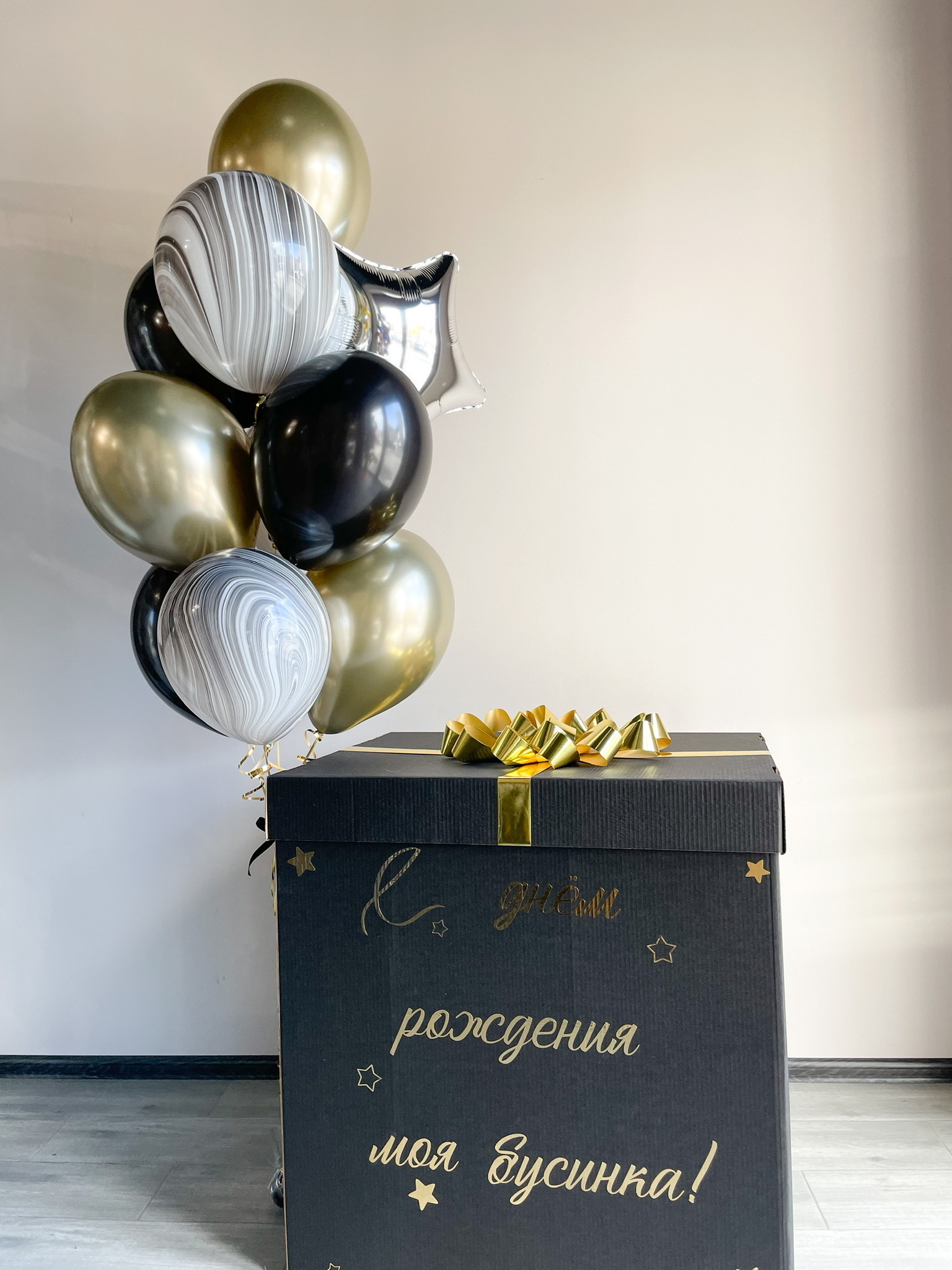 - Большая коробка с бантом и надписью