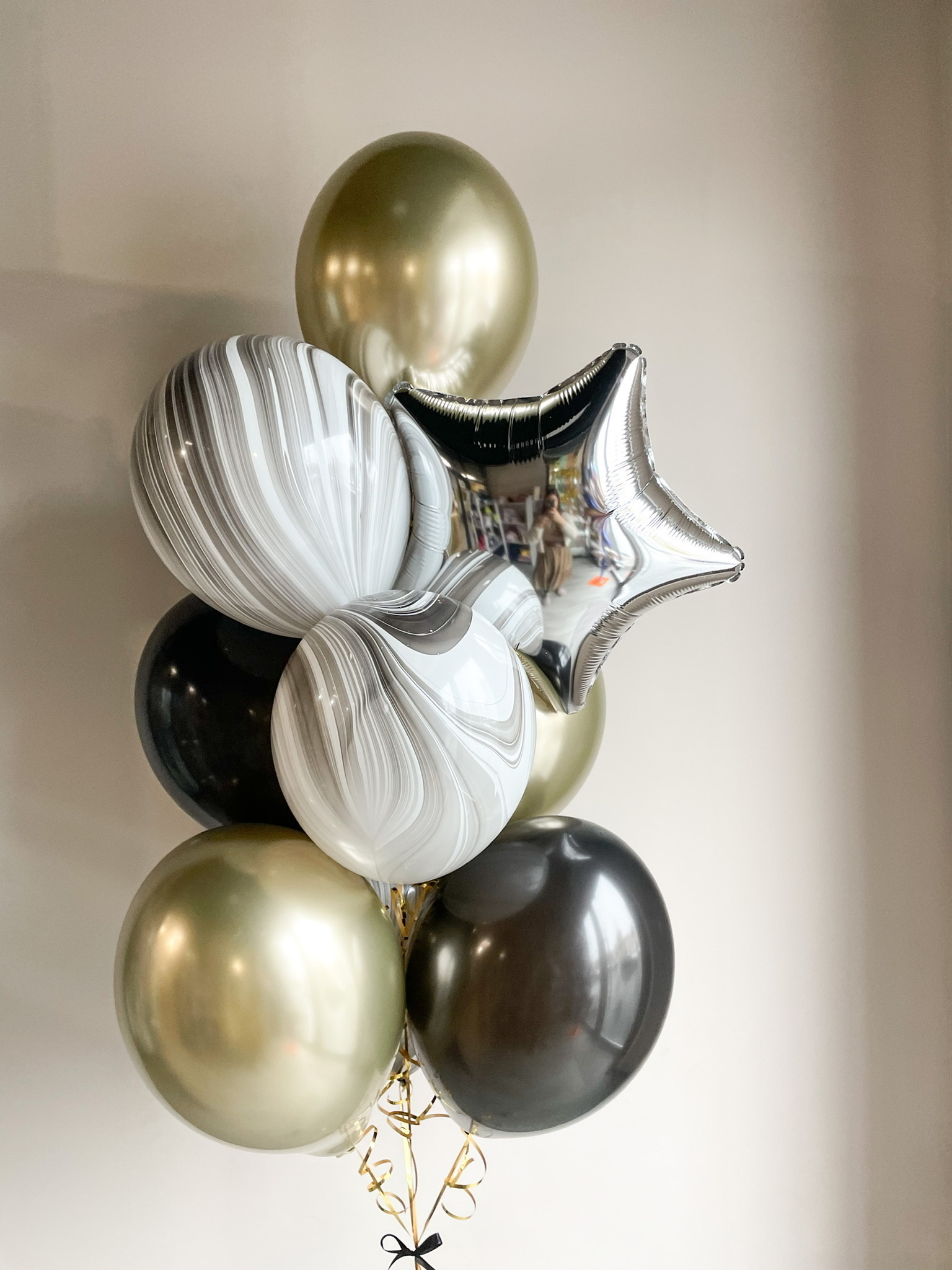 - Фонтан из 10 шаров: звезда, 2 агата, 4 хром и 3 однотонных