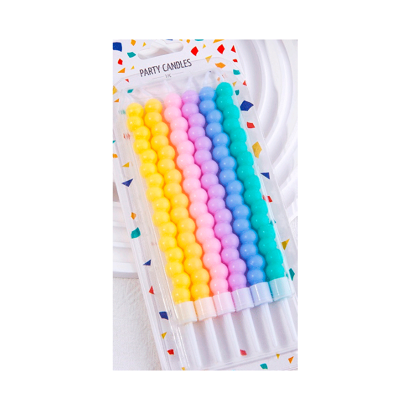 Свечи тортовые классические "Пузыри" (Пастель разноцветная) с держателями 6 шт