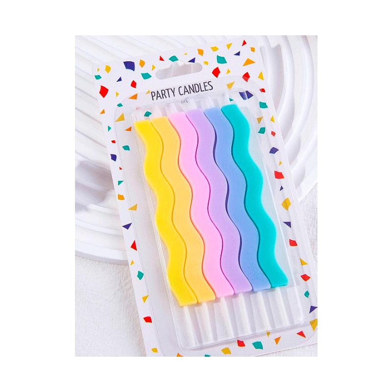 Свечи тортовые классические "Волны" (Пастель разноцветная) с держателями 6 шт