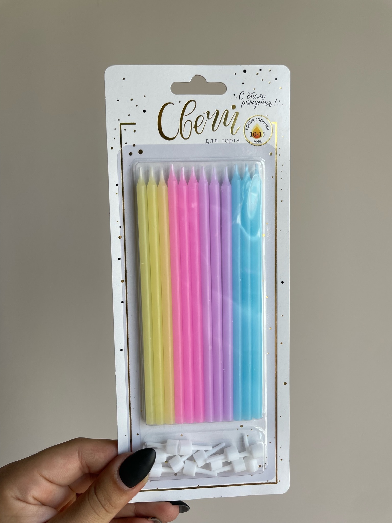 Свечи тортовые классические XL (Ассорти) Макаронс с держателями