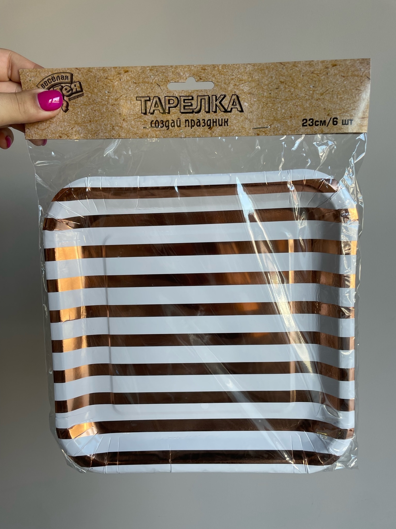 Тарелка фольг розовое золото 23см 6шт/G